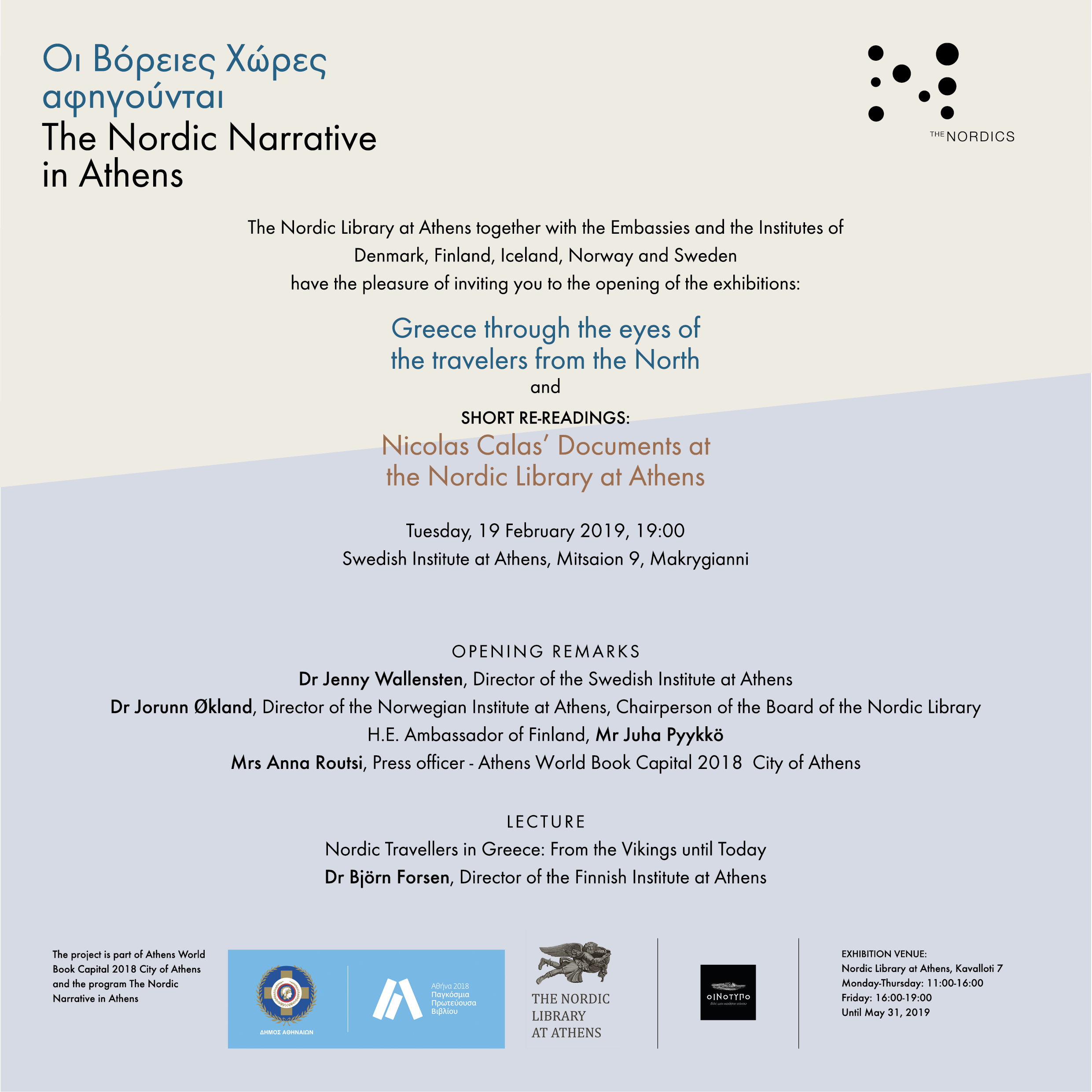 Την ημέρα των εγκαινίων της έκθεσης Η Ελλάδα μέσα από τα μάτια περιηγητών από το Βορρά, την Τρίτη 19 Φεβρουαρίου 2019 στις 19:00, ο Björn Forsén, διευθυντής του Φινλανδικού Ινστιτούτου Αθηνών θα δώσει διάλεξη με θέμα "Nordic travellers in Greece: From the Vikings until Today", στο Σουηδικό Ινστιτούτο Αθηνών, Μητσαίων 9.