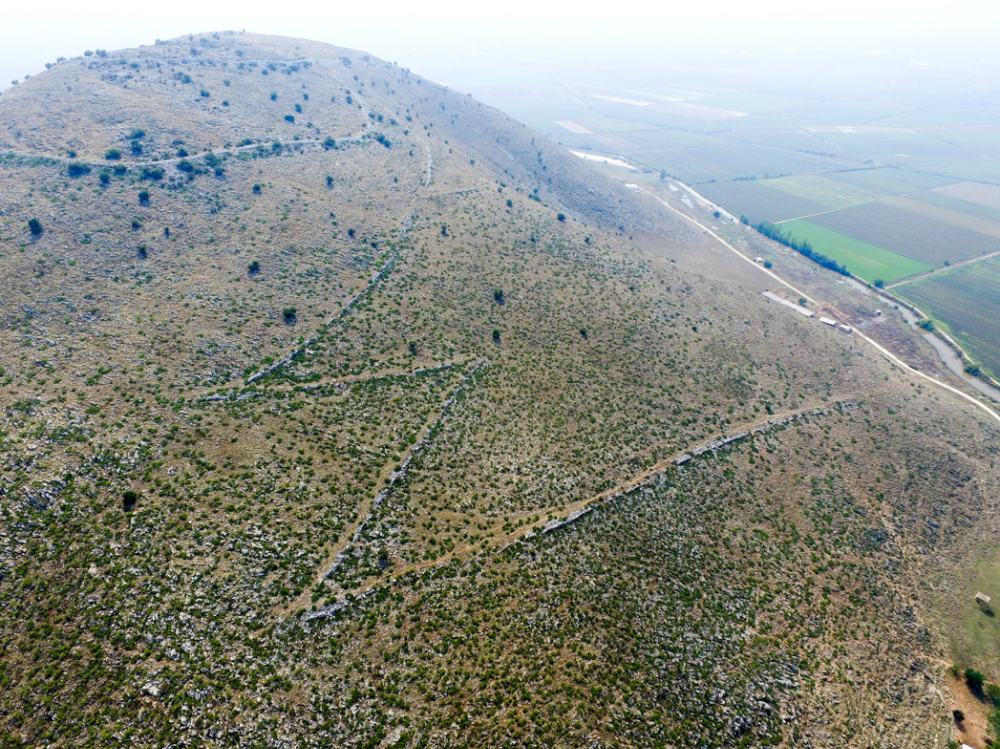 The results indicate that the site contains the remains of four major and discrete building programmes, spanning roughly 1200 years of history. On the hilltop there are extensive remains of a large fortification, possibly late Archaic in date, with impressive walls still preserved to more than 2 metres in height. Two monumental-size roads connect this fortified space with the surrounding plains below, ascending the steep slopes in a serpentine fashion.
