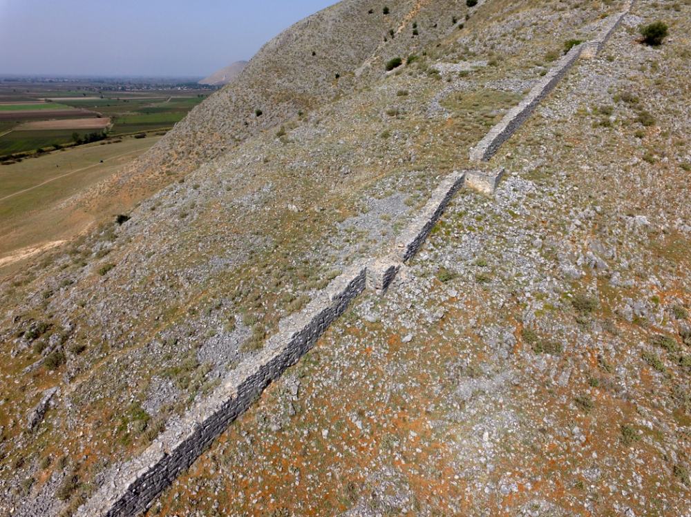 This fortification was partially destroyed in the fourth century BCE, when a sizeable Classical-Hellenistic city was established in the flat area immediately south of the hill. The remains here have all been covered by erosion masses from the hill and silt from the nearby river Enipeus, but can be discerned with great detail in the geophysical results. Among the buried remains there are clear outlines of streets, squares and houses, as well as the city wall with over 20 towers. This city wall is also well-preserved above ground on the large akropolis on the top of the hill, and must have been an impressive sight in the surrounding area. The large city of this period – the name of which is still unknown – was abandoned at some point in the early second century BCE, possibly as a result of the devastating Second Macedonian War that severely struck this region.