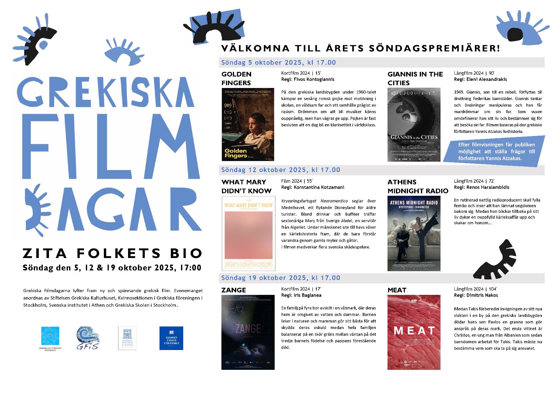 The Greek Movie Days is a yearly event organized by the Swedish institute at Athens, the Greek House of Culture, the Greek School in Stockholm and the Women’s section of the Greek association in Stockholm.