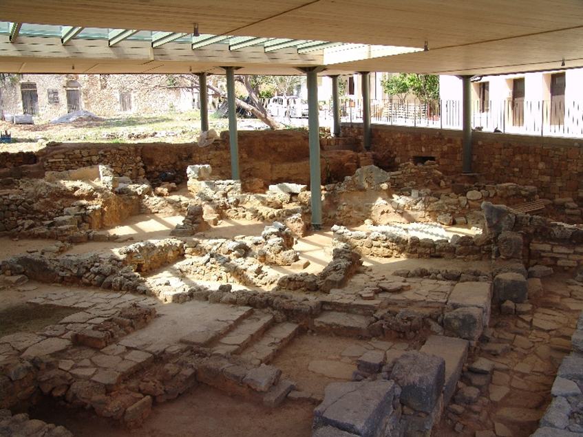De första tecknen på mänsklig aktivitet på Agia Aikaterinitorget utgörs av keramik, härrörande från övergången från neolitikum till den tidiga bronsåldern. Efter detta finns flera rester av bosättningar från tidig-minoisk tid (3100–2100 f.Kr.), omfattande väl konstruerade byggnader från EMII-III och MMIA (2700–2100 och 2100–1900 f.Kr.). Även om inga byggnadsrester bevarats från den följande förpalatiala perioden (2000–1700 f.Kr.) har belägg för bosättning hittats i form av omfattande keramikrester, till exempel Kamares pottery och eggshell ware, såväl som stenar med stenhuggarmärken. Omkring år 1700 f.Kr. förstördes platsen och bosättningen återuppbyggdes inte förrän LMIA (1600 f.Kr.) då förpalatiala strukturer jämnades med marken. De viktiga fynden från sen-minoisk tid (omkring 1600–1050 f.Kr.) och beläggen för kontinuerlig bosättning genom perioden är anmärkningsvärda.