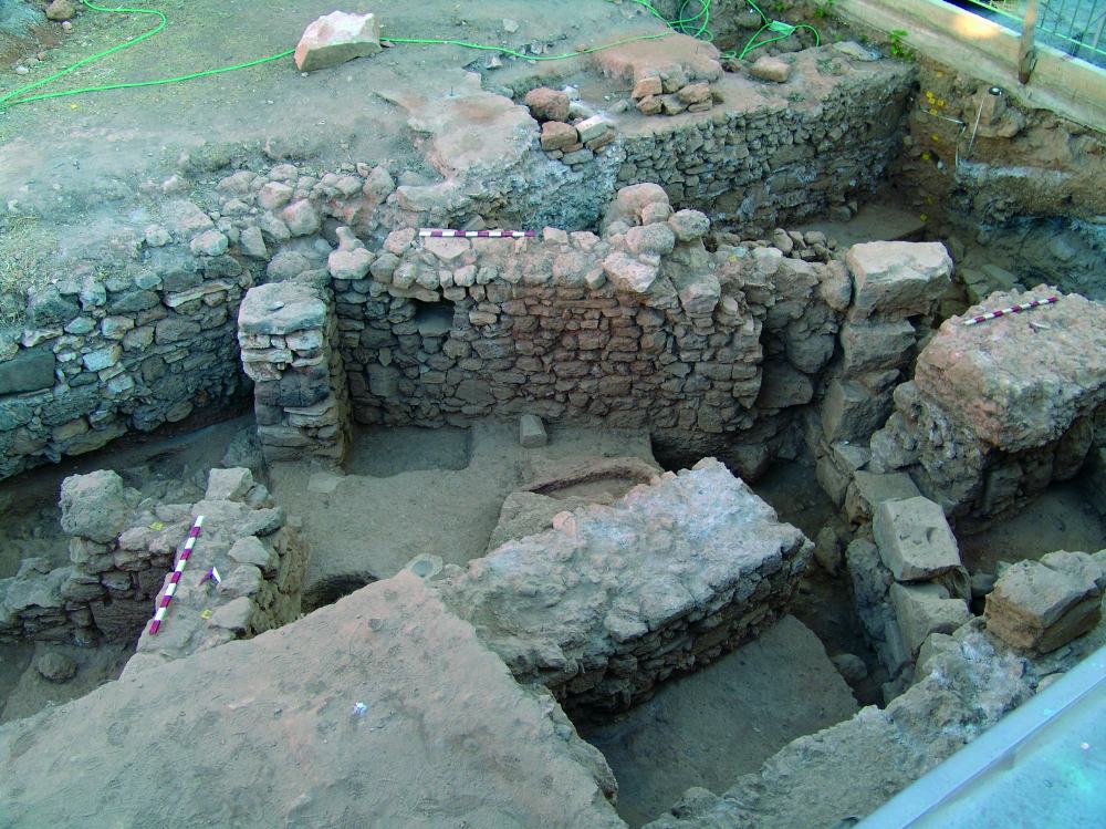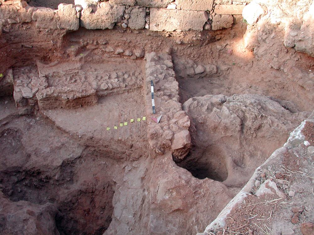 Fig. 6: Väggar från LM I, LM IIIA:2, LM IIIB:1 samt från bysantinsk, venetiansk och turkisk tid, vilket visar komplexiteten i det arkeologiska arbetet på platsen.