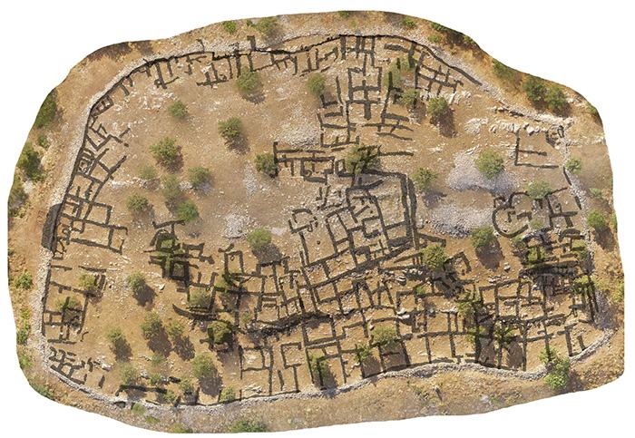 Fig. 1: Karta över den befästa bosättningen i Malthi (Basemap: Google maps satellitbild).